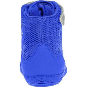 The Nike Inflict 3 LE Blue-Silver Wrestling Shoes are designed for young wrestlers needing both performance and comfort: