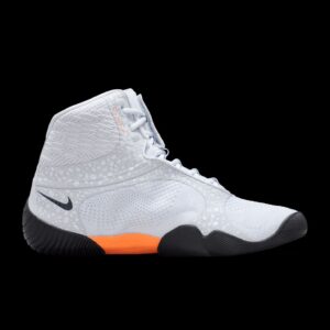 Elevate your wrestling game with the Nike Tawa SE White-Orange Wrestling Shoe—your ultimate partner in pursuit of victory.
